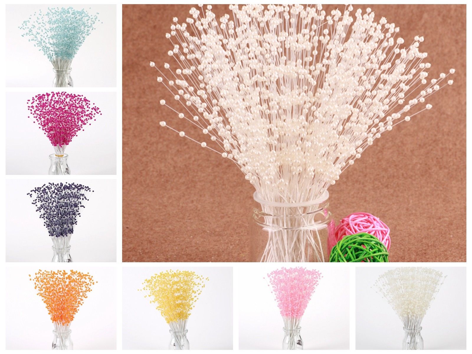 20 Bunch Pearl Flower Stem Beads Garland Sprays Bridal Bouquet Wedding Party